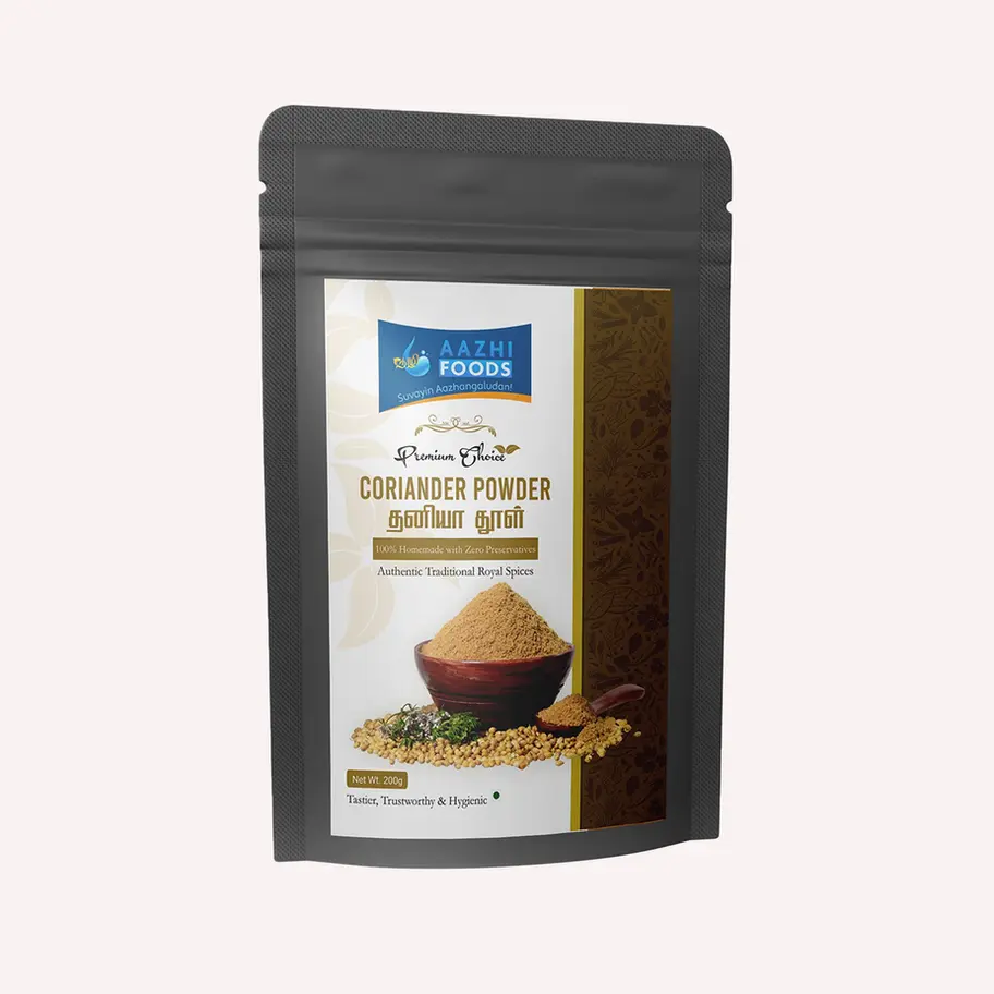 Aazhi Foods Coriander Powder — your perfect soulmate for soulful cooking that brings out the authentic flavors of home.