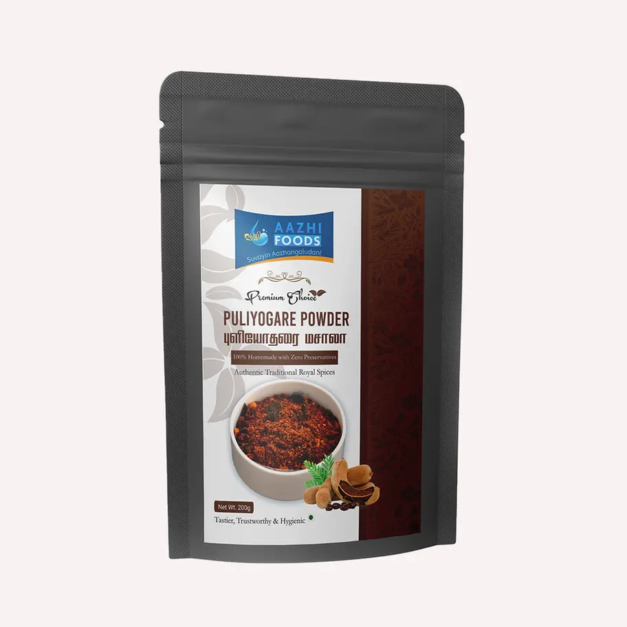 Aazhi Foods Puliyotharai Powder — your perfect soulmate for tangy, flavorful, and soulful rice dishes that celebrate tradition in every bite.